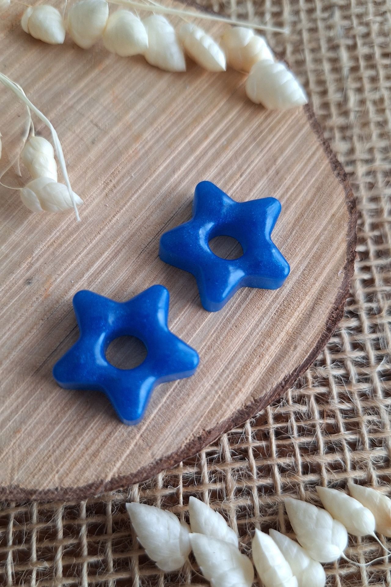 Création en résine epoxy en forme d'étoile bleue foncée.