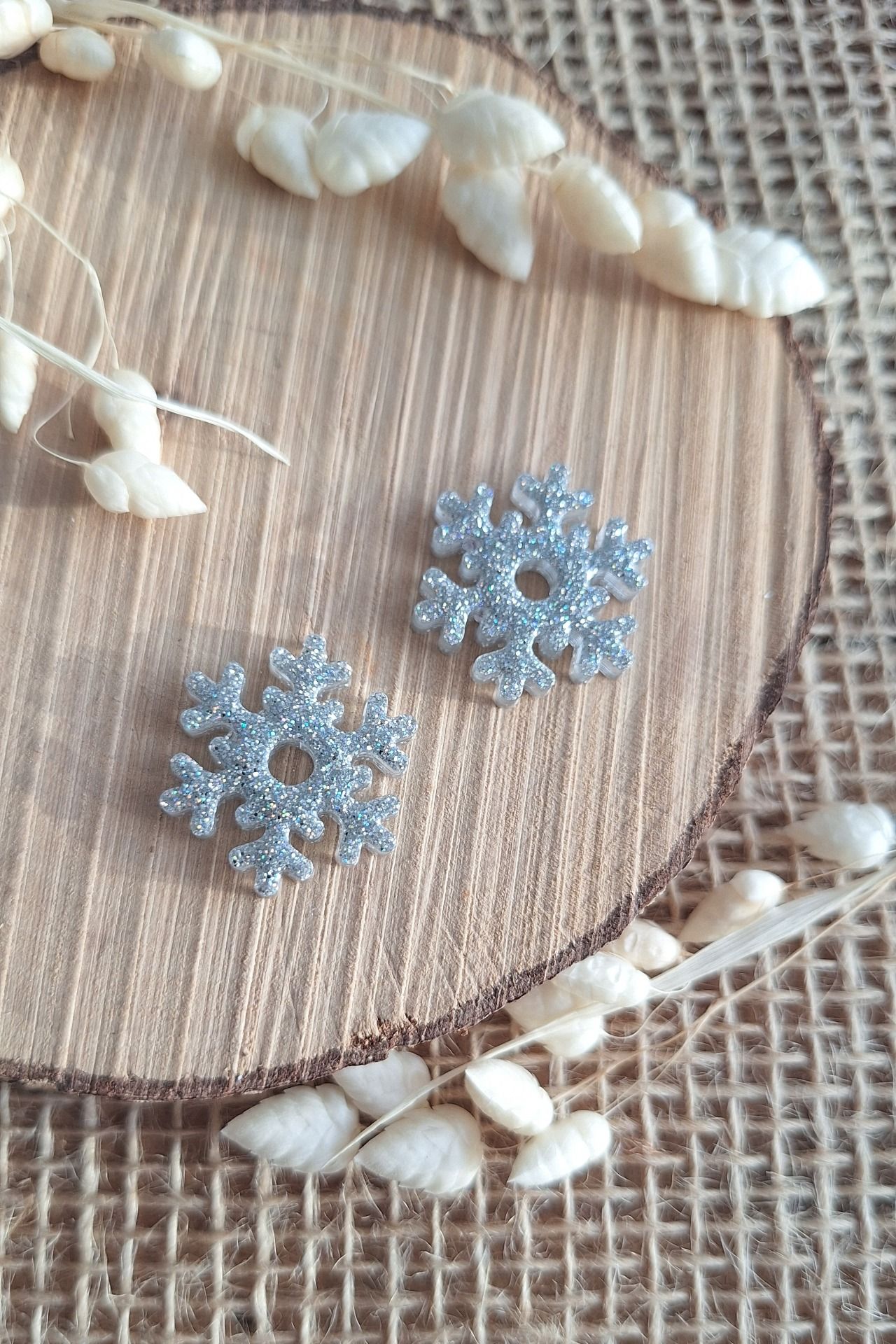 Réalisation en résine époxy en forme de flocon argentpaillettes