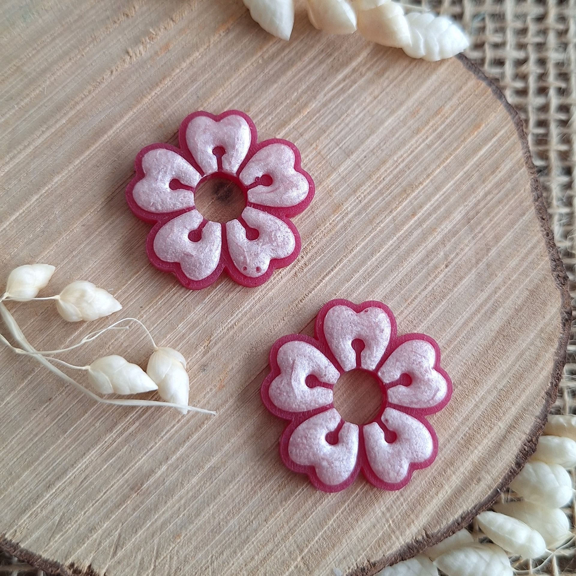 Fleur de cerisier aux couleurs du printemps à associer à vos créoles. De belles formes pour un bijou plein d’amour.