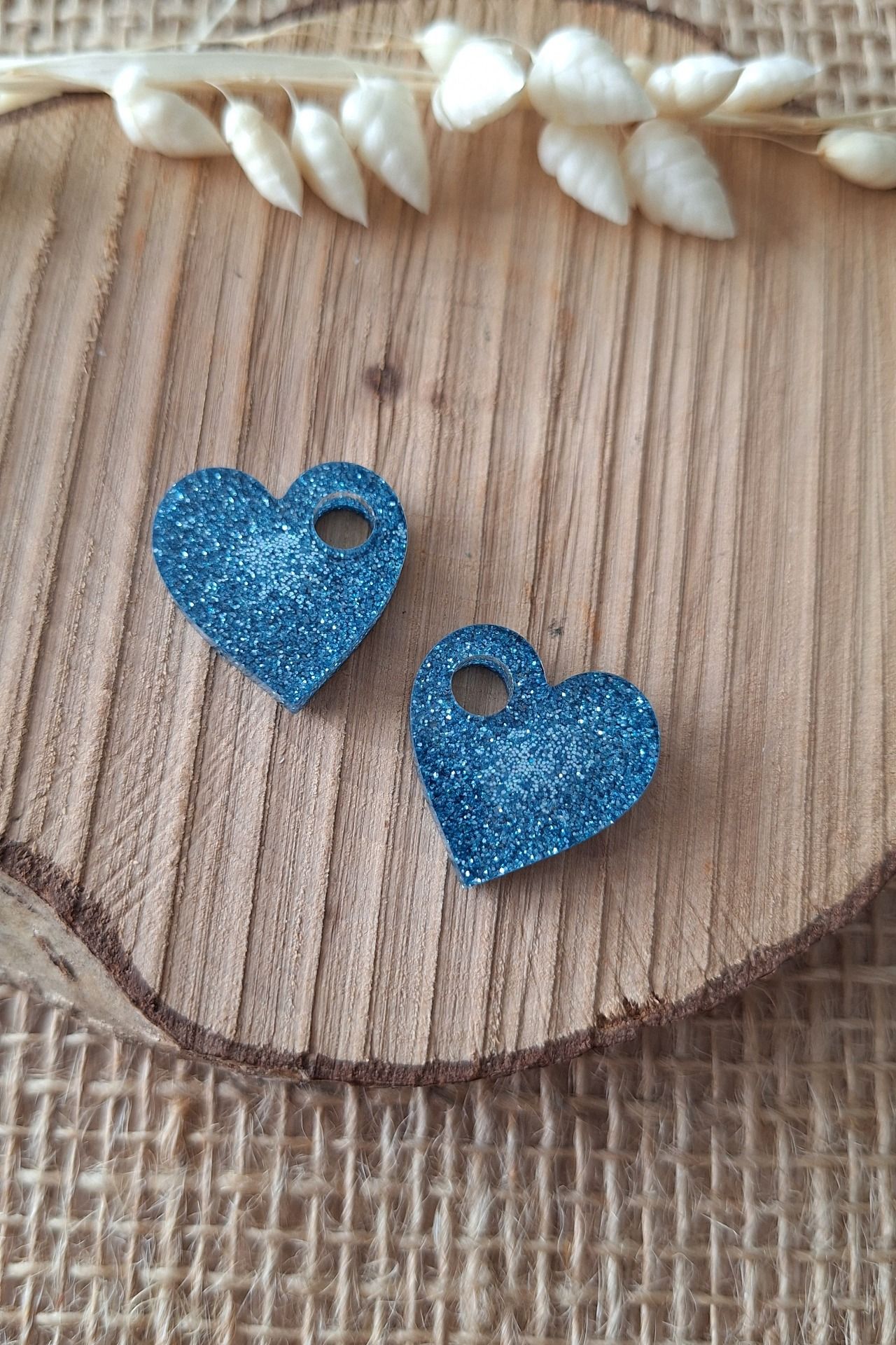 Création en résine époxy en forme de Coeur bleu paillettes.