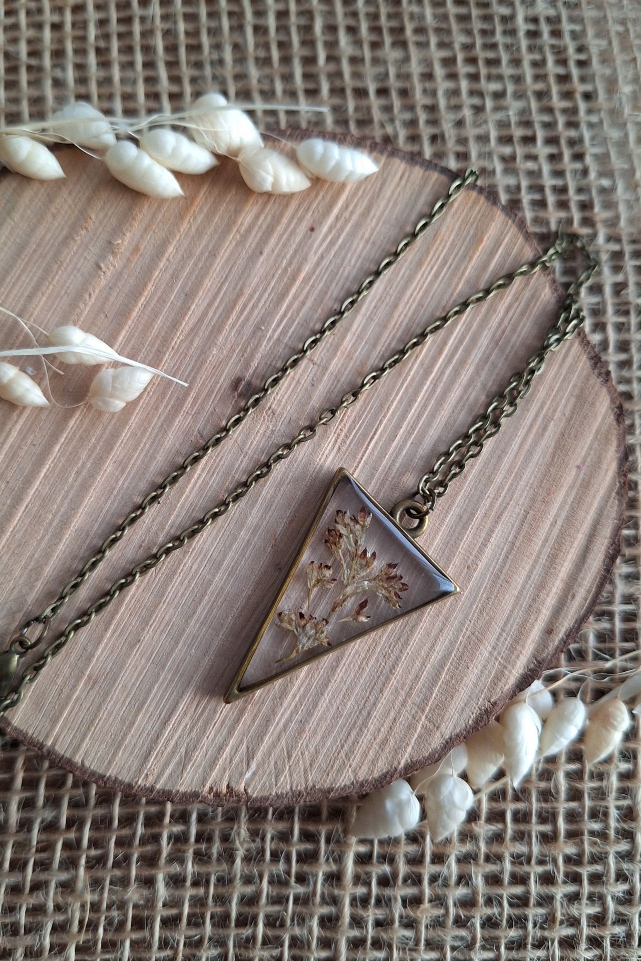 Collier réalisé à la main avec des fleurs séchées par moi même afin de créer des pièces uniques.