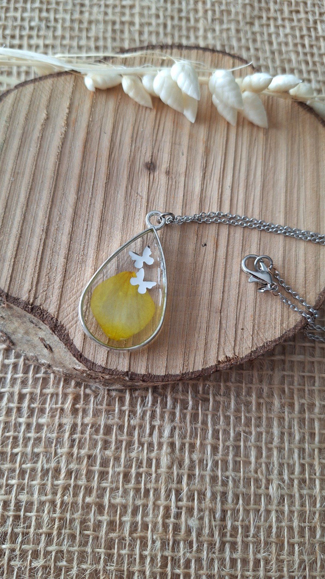 Collier réalisé à la main avec des fleurs séchées par moi même afin de créer des pièces uniques.