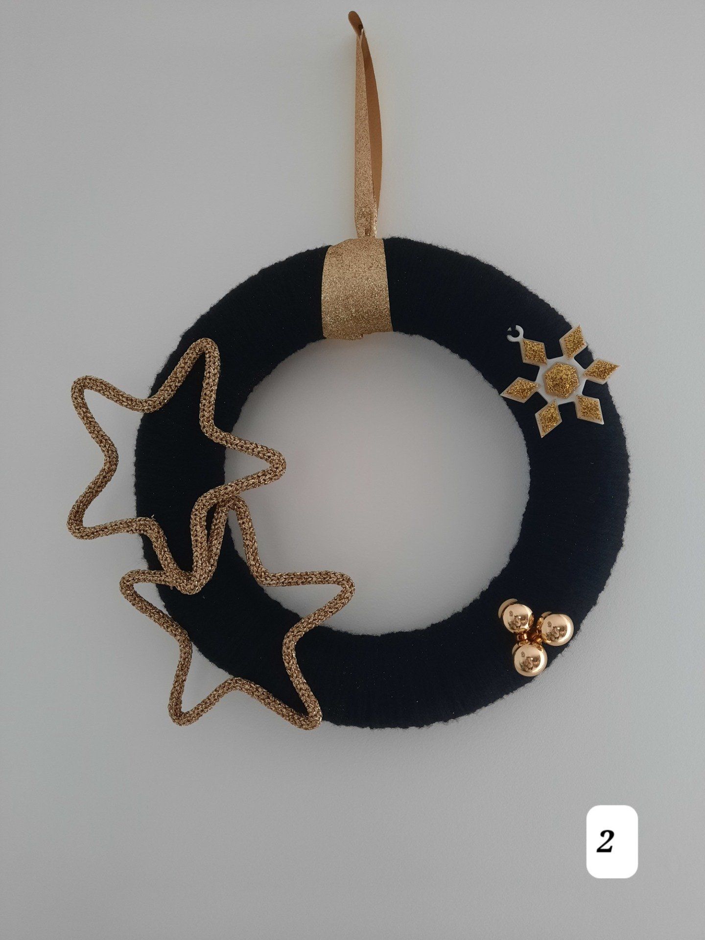 Couronne de l’Avent artisanale réalisée en laine et tricotin.