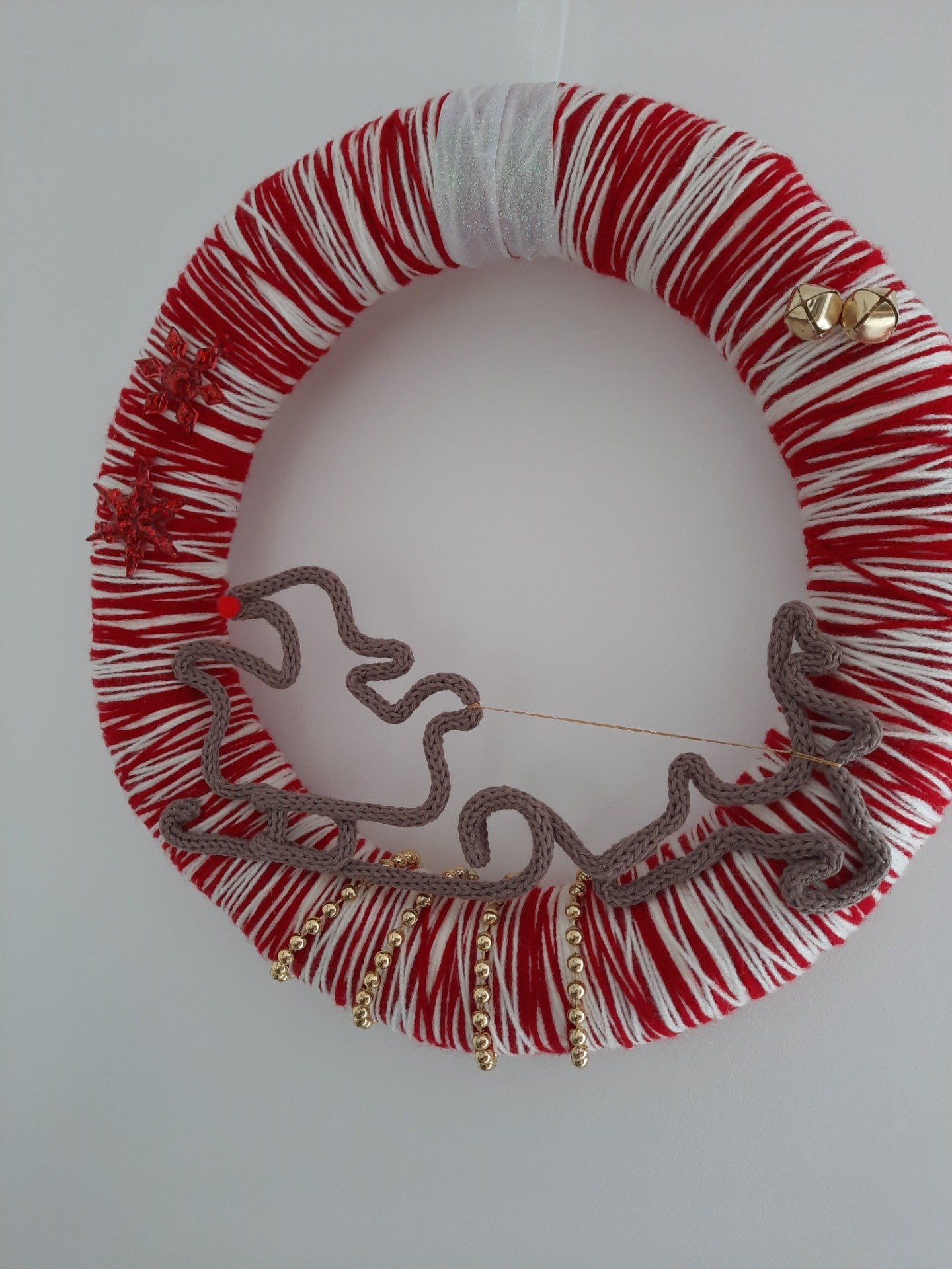 Couronne de l’Avent artisanale réalisée en laine et tricotin.