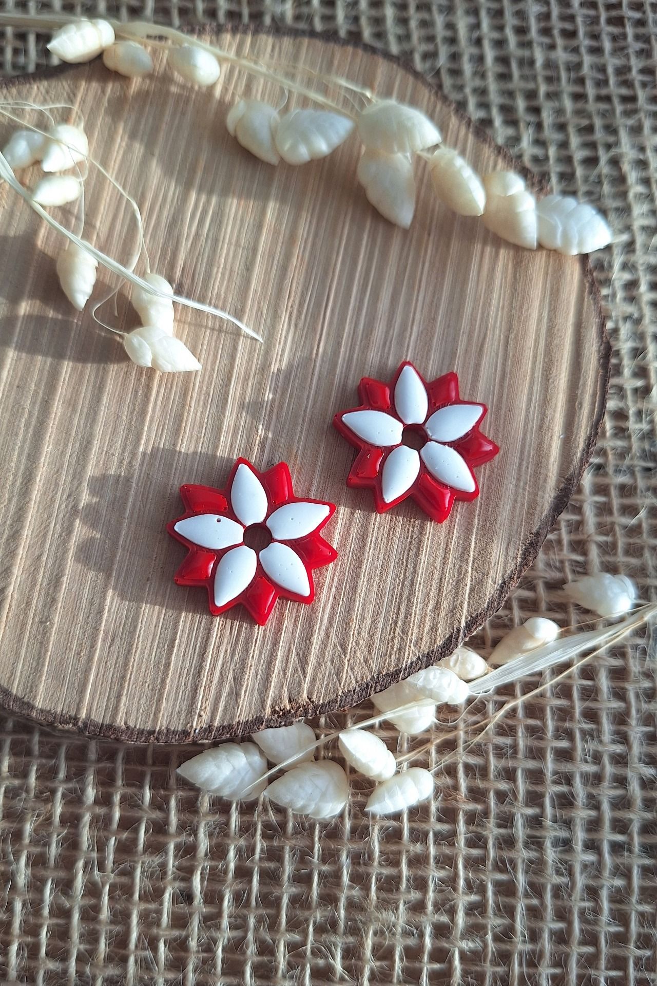 Réalisation en résine époxy en forme de poinsettia rouge et blanc