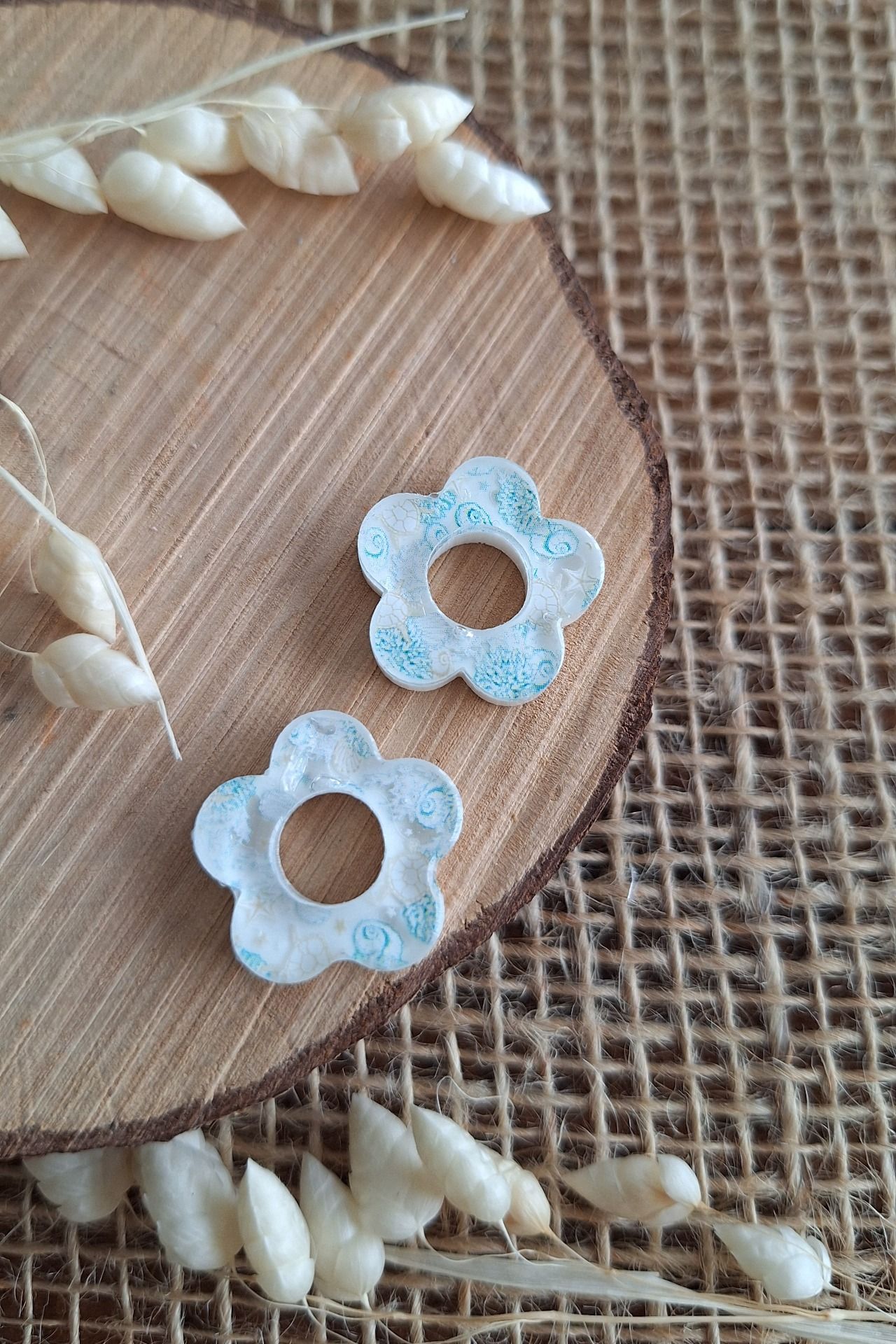 Création en résine epoxy en forme de fleur à motif d'été.