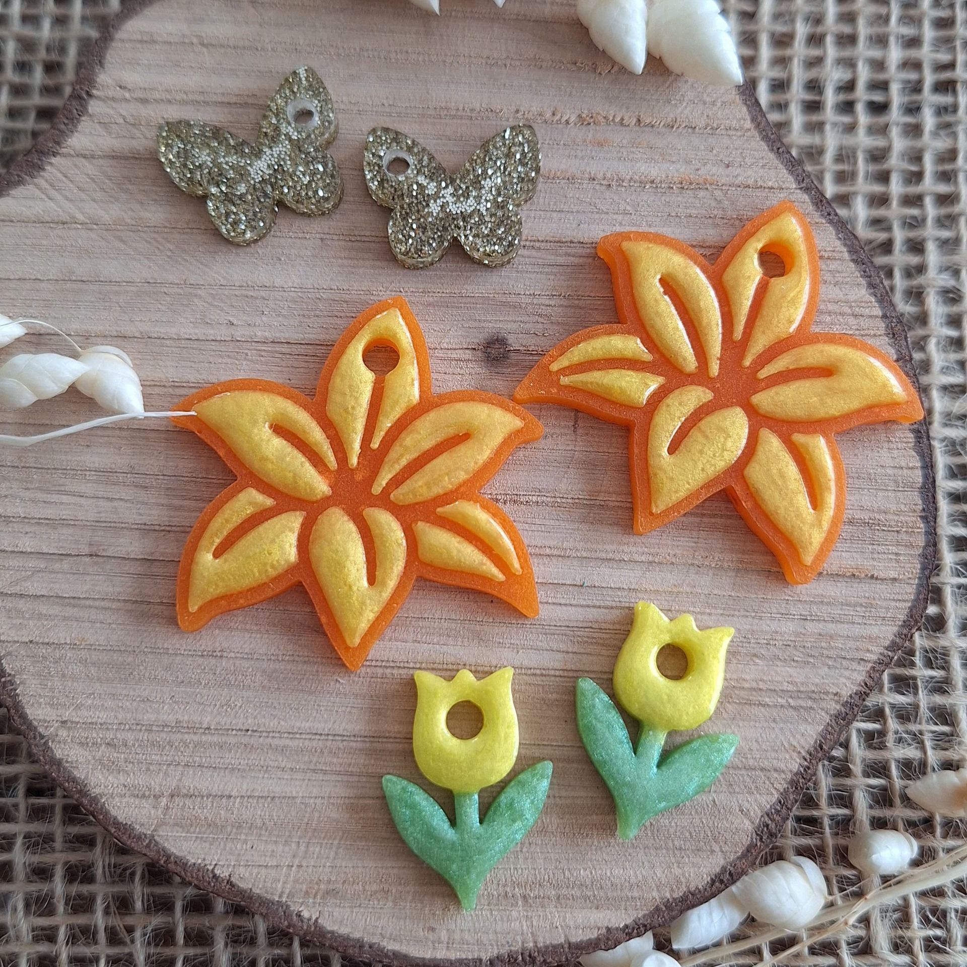Lot de 3 pampilles aux couleurs du printemps à associer à vos créoles. De belles formes pour un bijou plein d’amour.