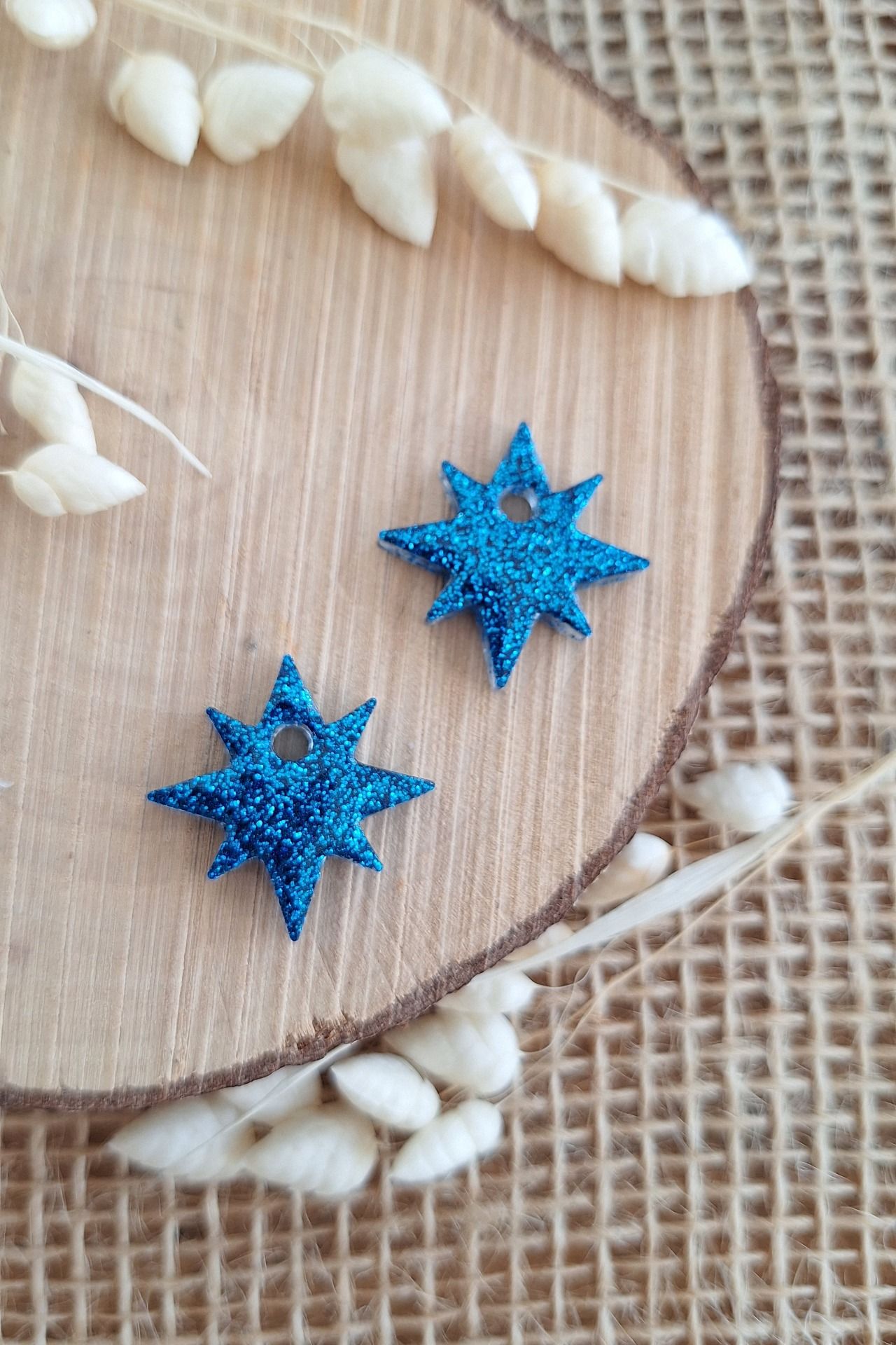 Réalisation en résine époxy en forme étoile polaire bleues paillettes
