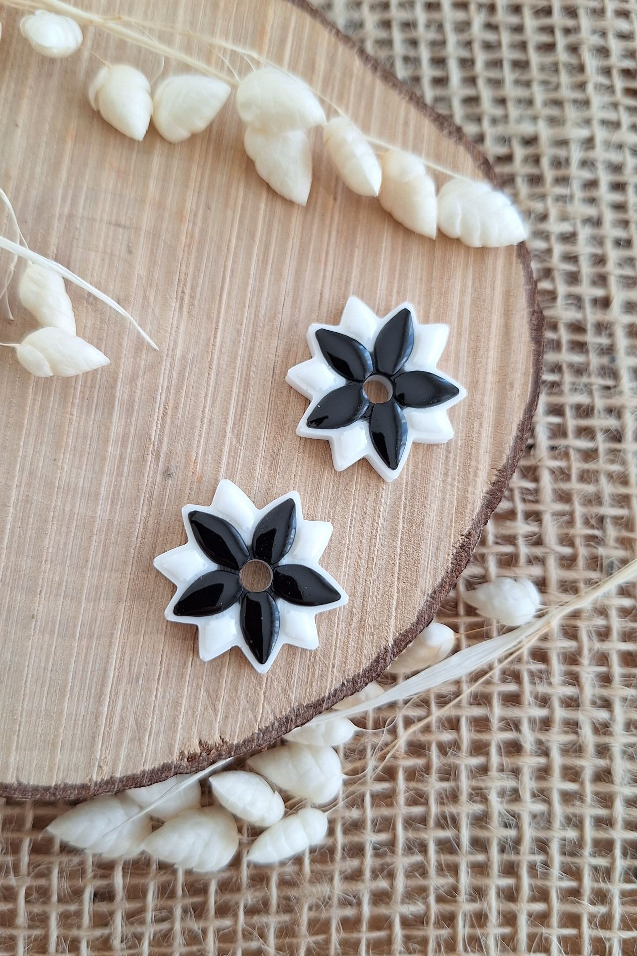 Réalisation en résine époxy en forme de poinsettia blanche et noire