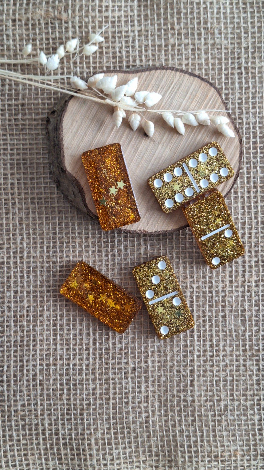 Jeu de dominos fait et peint à la main en résine, chaque pièce est unique. Vendu avec un pochon de rangement pour le protéger et l’emporter partout. Un petit jeu artisanal plein de charme