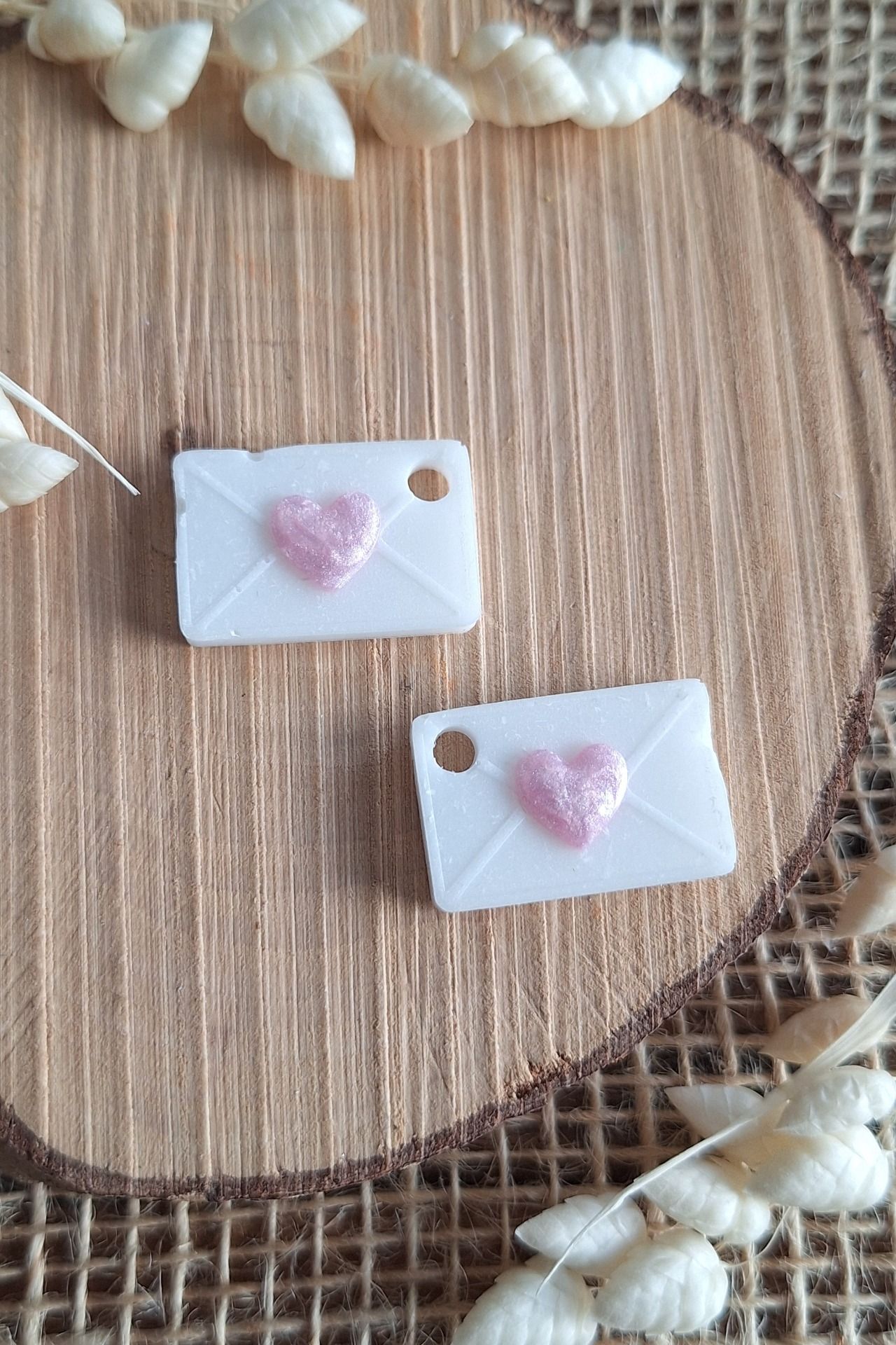 Réalisation en résine époxy en forme d enveloppe blanche avec cœur rose