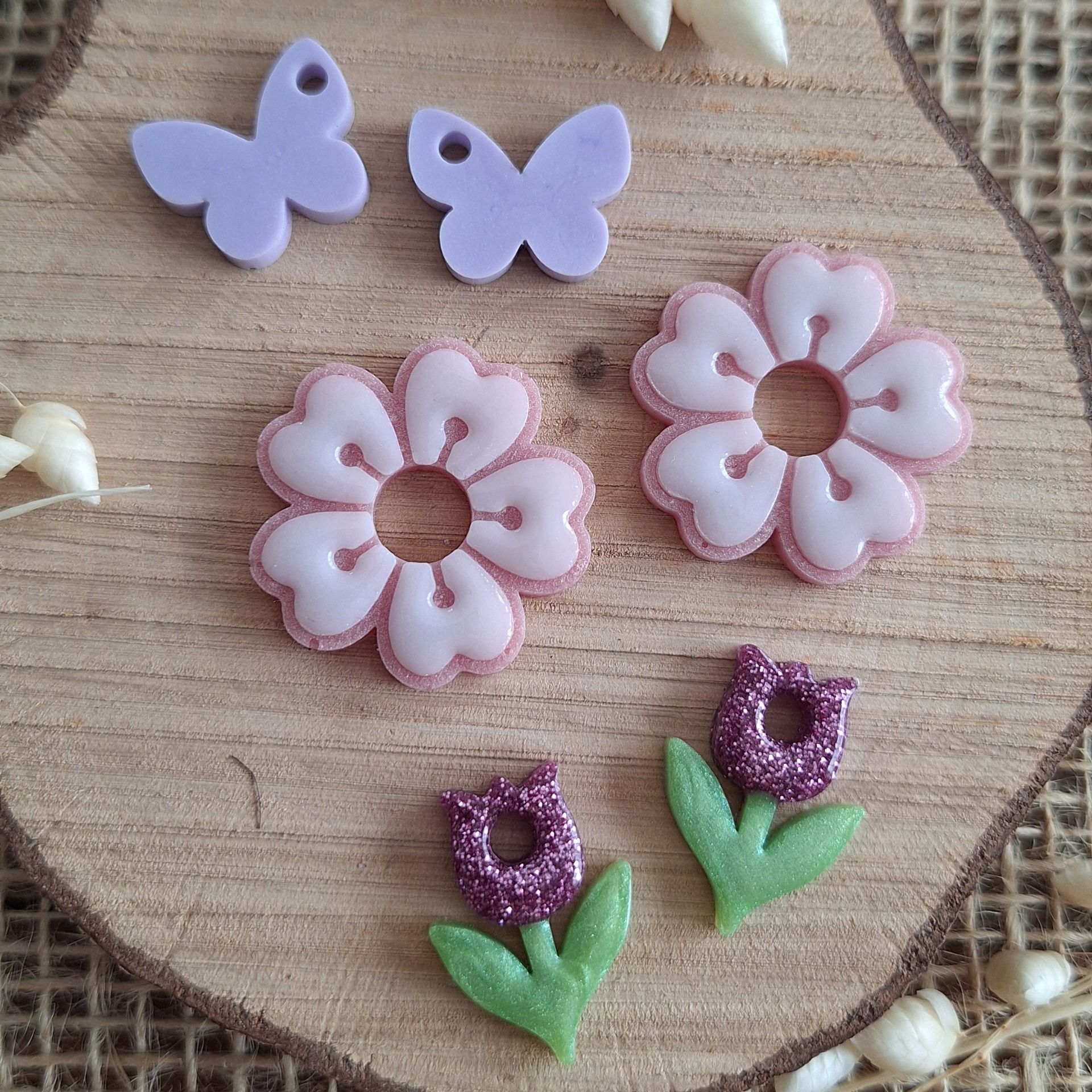 Lot de 3 pampilles aux couleurs du printemps à associer à vos créoles. De belles formes pour un bijou plein d’amour.