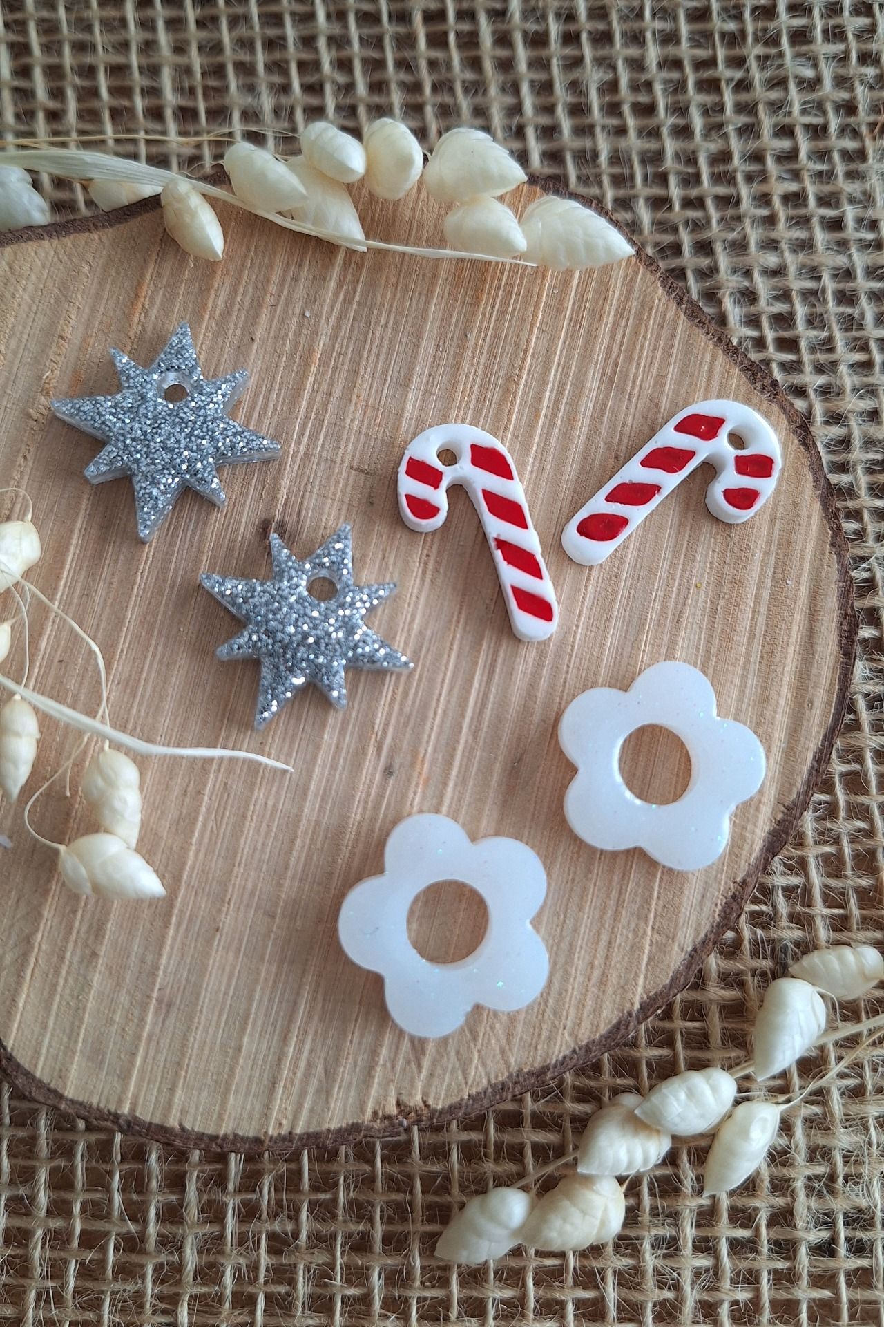 Réalisation en résine époxy , lot de 3 formes aux couleurs de Noël.