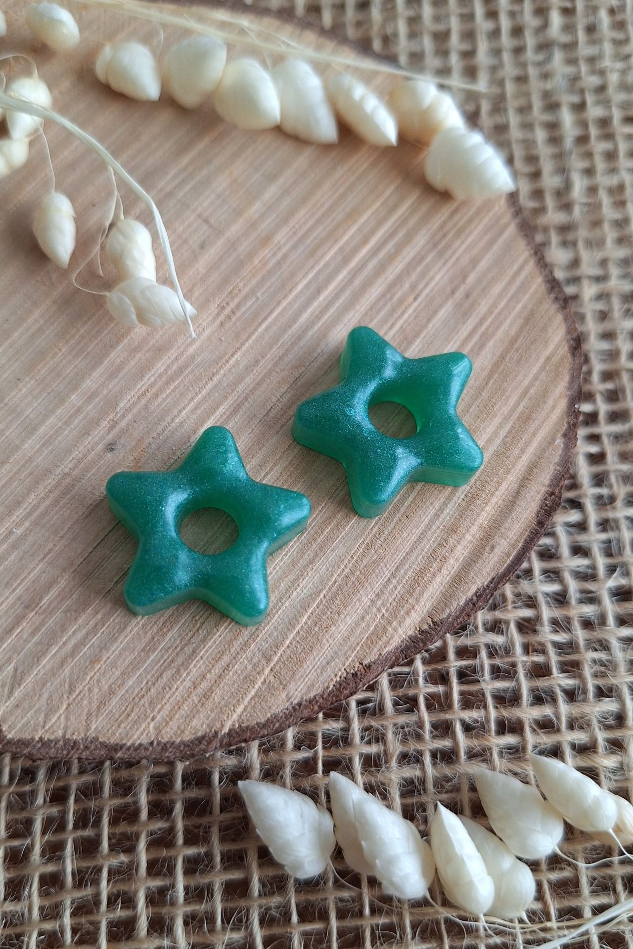 Création en résine epoxy en forme d'étoile verte.
