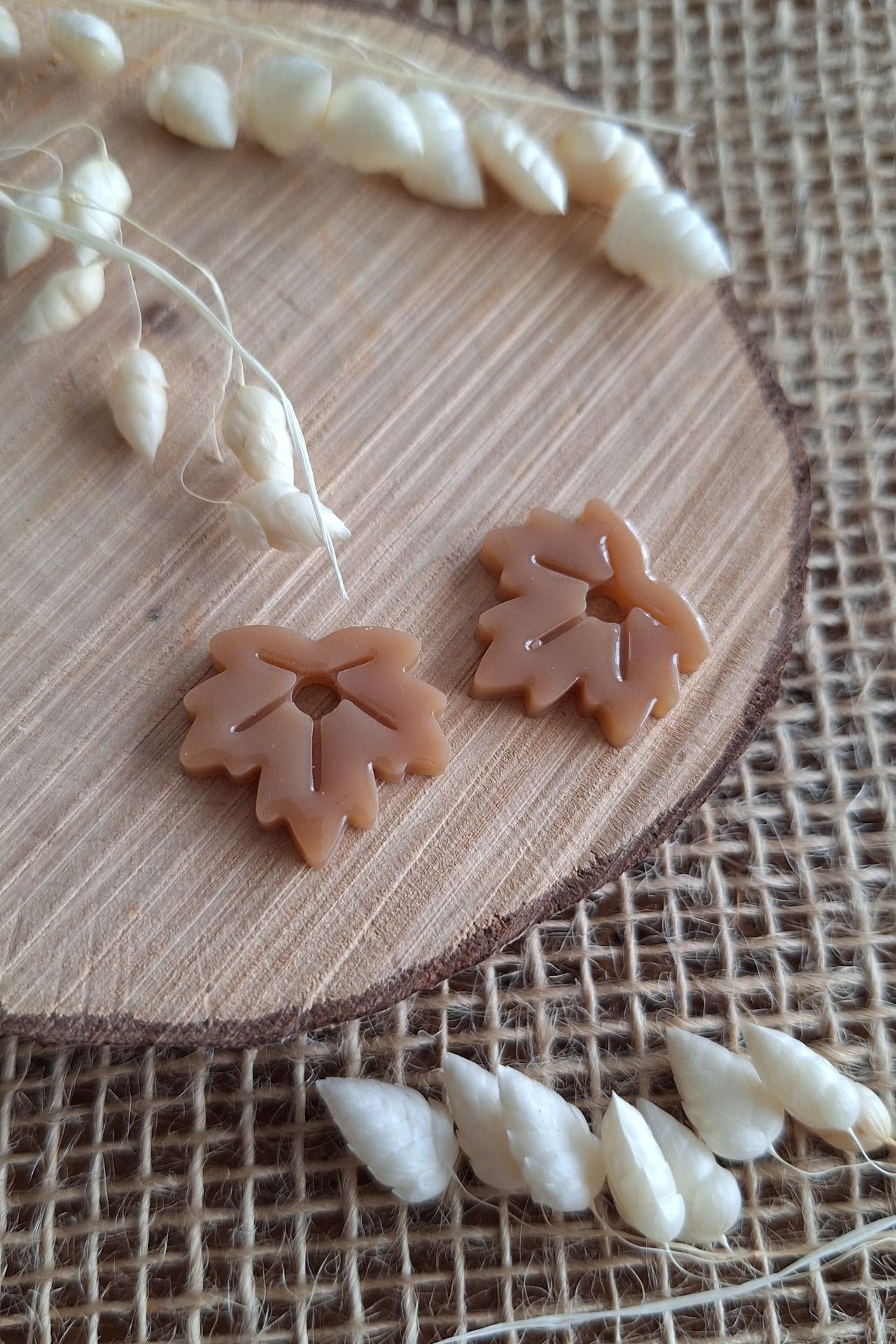 Façonnées à la main, ces pampilles capturent la douceur et les couleurs chaleureuses de l’automne. Une touche naturelle pour sublimer ta tenue de tous les jours.