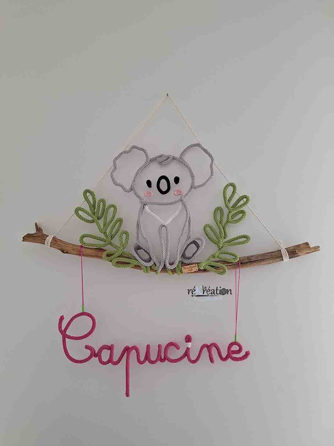 Le tricotin permet de créer des formes délicates et harmonieuses : prénoms, mots, symboles ou encore animaux. C'est une technique artisanale qui offre un rendu à la fois minimaliste et original, parfait pour personnaliser un espace ou offrir en cadeau de naissance.