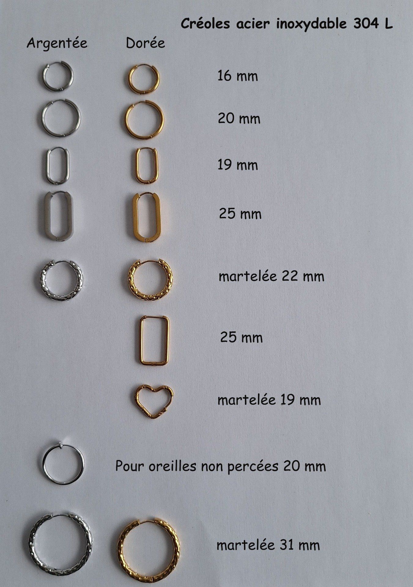 Les créoles ovales 25 mm et les créoles martelées ne conviennent pas à toutes les pampilles créées, il faut privilégier les pampilles avec un trou assez grand.