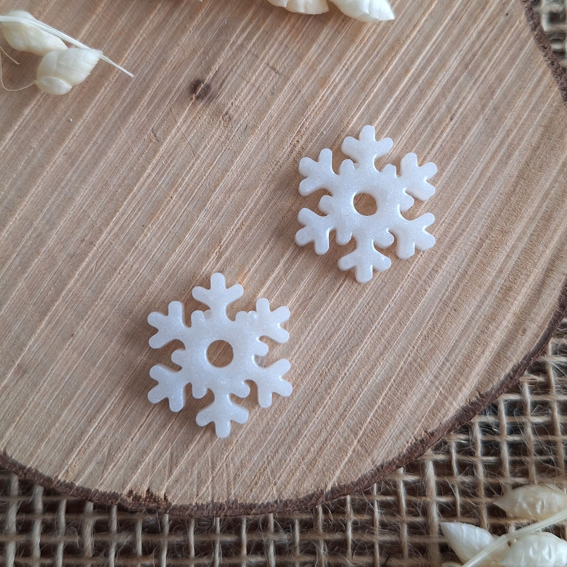 Réalisation en résine époxy en forme de flocon blanc métallisé