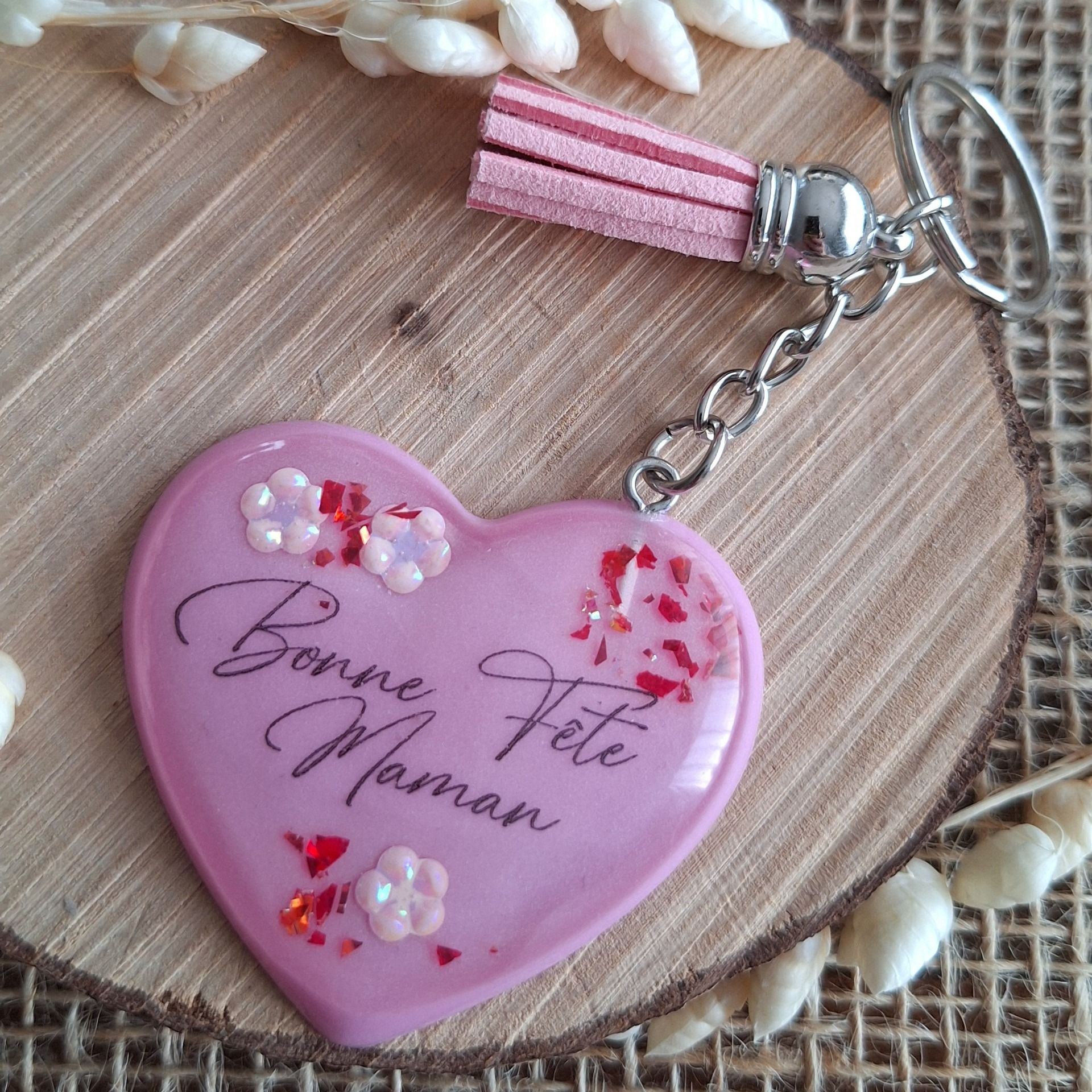 Porte-clé en forme de coeur en résine époxy