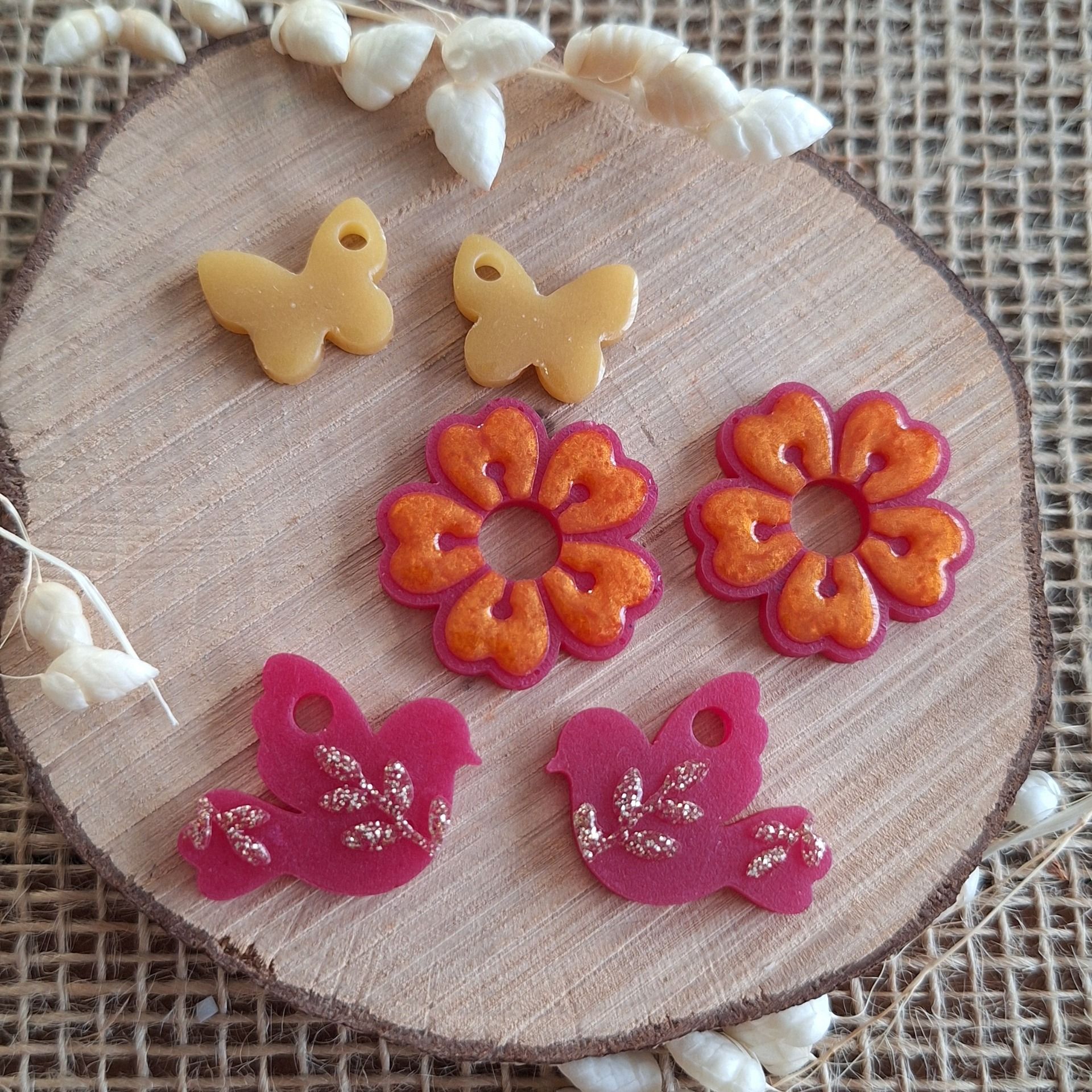 Lot de 3 pampilles aux couleurs du printemps à associer à vos créoles. De belles formes pour un bijou plein d’amour.