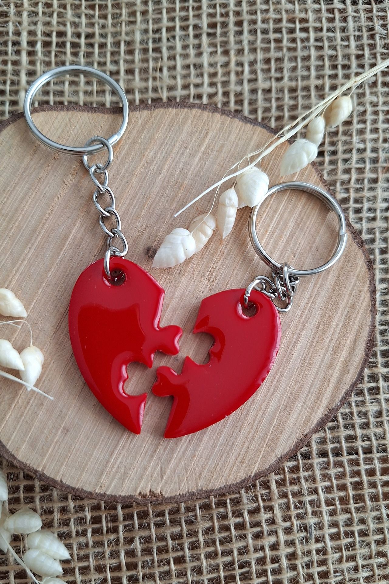 Porte-clés cœur divisé en deux, chacun sa moitié. Création en résine faite main, symbole d’amour et de lien unique à emporter partout.