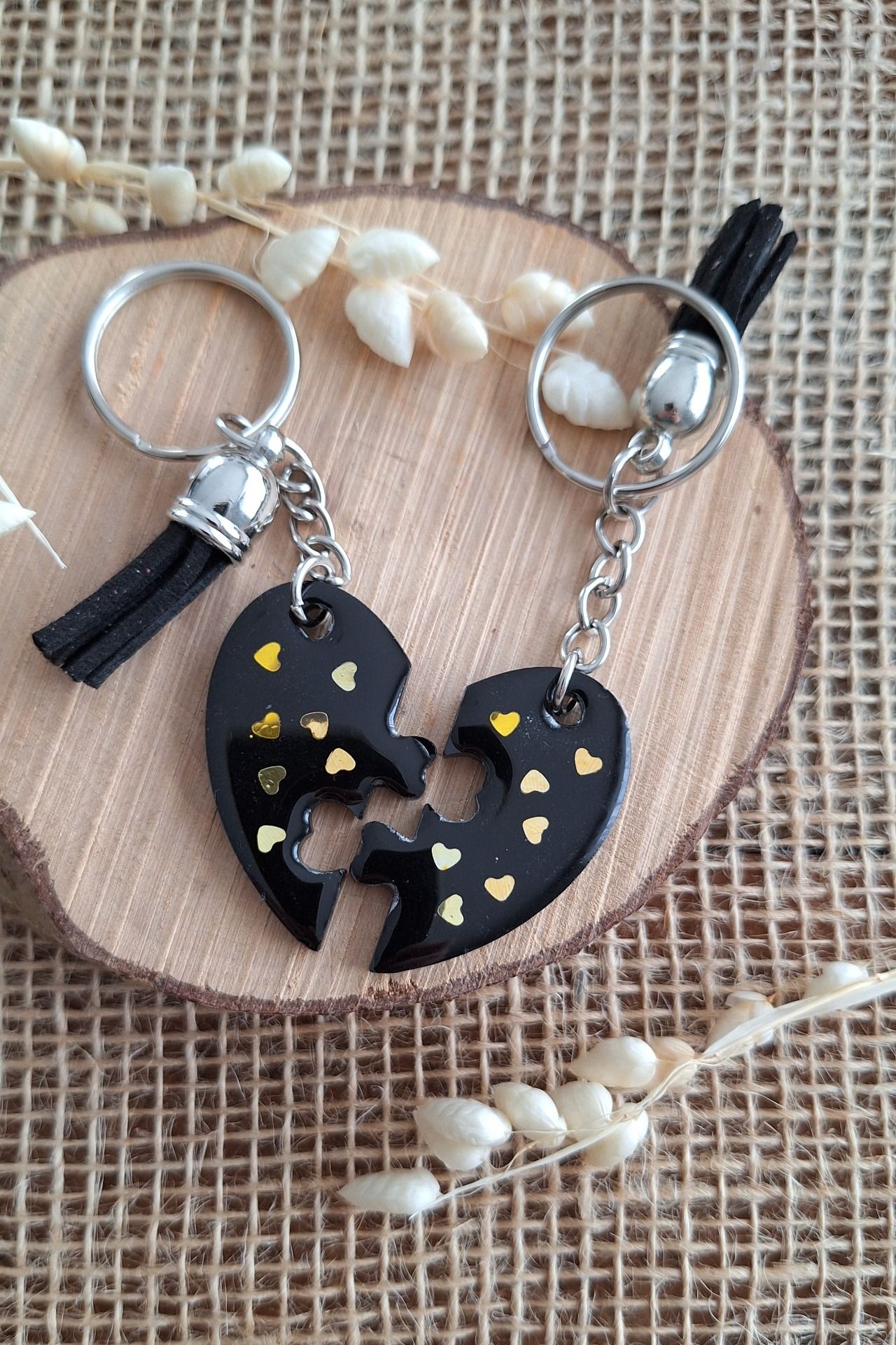 Porte-clés cœur divisé en deux, chacun sa moitié. Création en résine faite main, symbole d’amour et de lien unique à emporter partout.