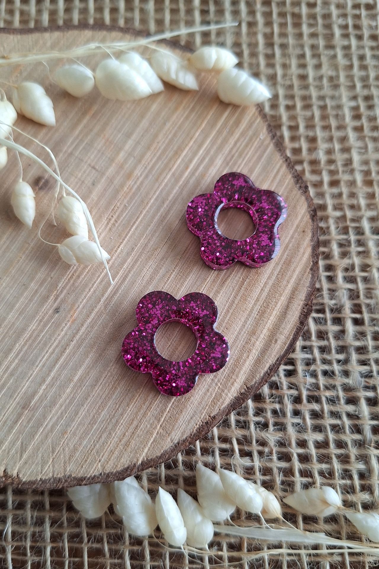 Création en résine époxy de couleur rose fuchsia paillettes