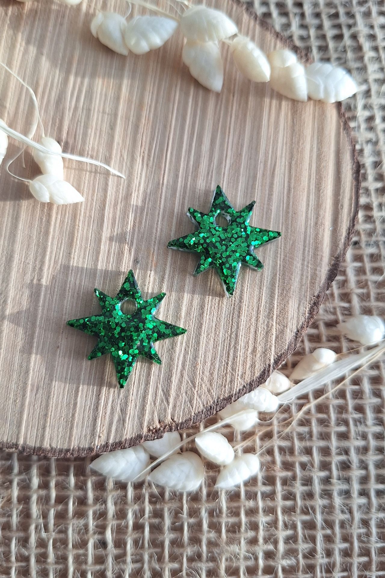 Réalisation en résine époxy en forme étoile polaire vert paillettes