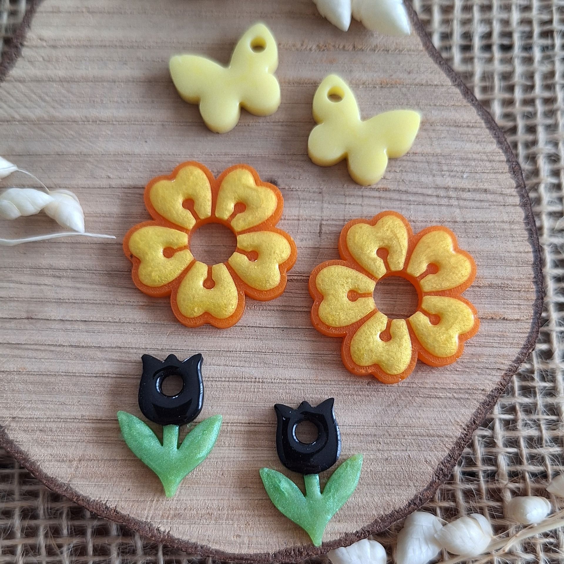 Lot de 3 pampilles aux couleurs du printemps à associer à vos créoles. De belles formes pour un bijou plein d’amour.