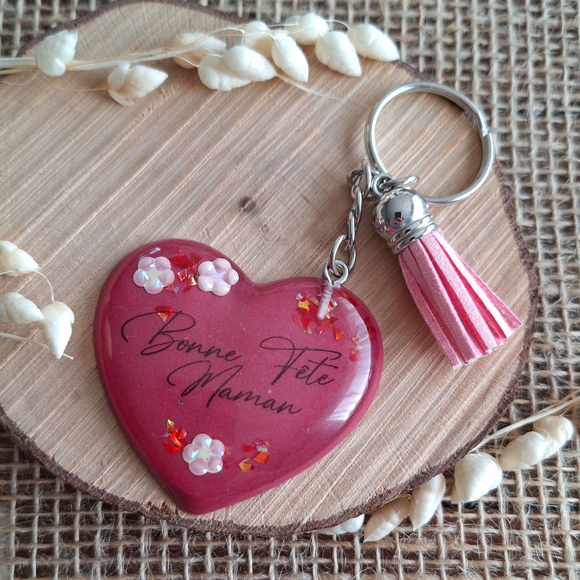 Porte-clé en forme de coeur en résine époxy