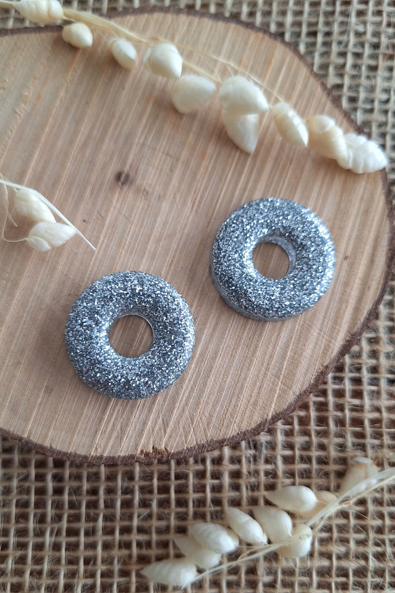 Création en résine époxy de couleur argent paillettes.